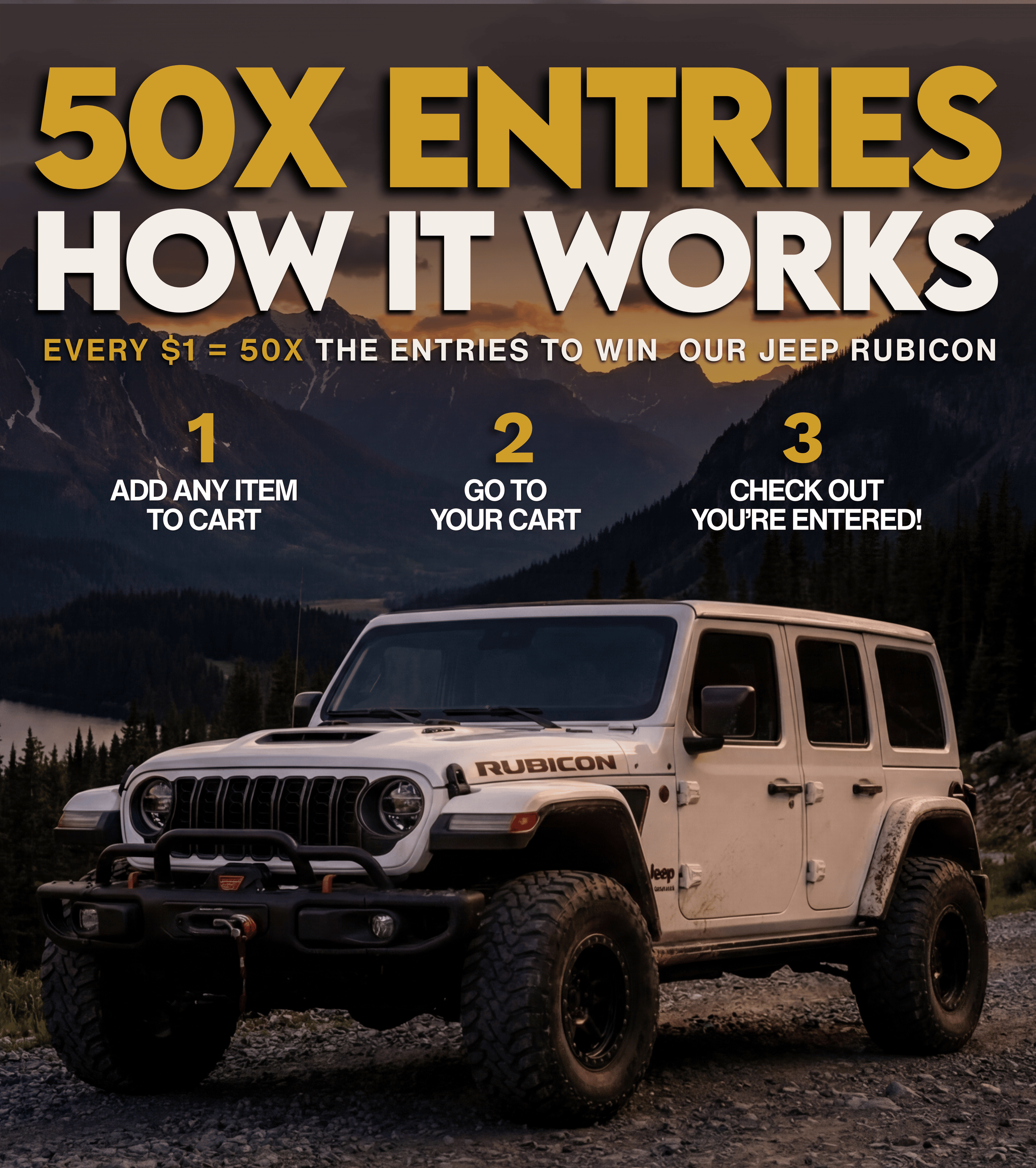ENTER TO GET 50X ENTRIES TO WIN A JEEP RUBICON 392 + $10,000 CASH
